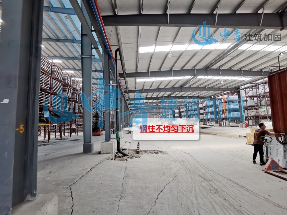 本钢结构顶升加固项目位于佛山南海,为地上一层的钢结构建筑,作为仓库使用用途,由于在使用期间地基发生了不均匀沉降导致导致钢柱不均匀下沉,从而产生了重大安全隐患急需采取加固补救措施。