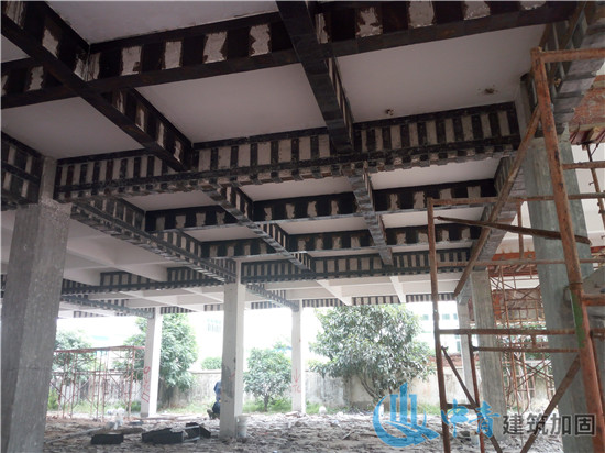 4、厂房楼板粘碳布加固在加固施工的过程中主要会接触到两种材料,分别是钢板和结构胶,钢板暴露在环境中容易腐蚀,所以在潮湿易腐蚀的环境中,我们大多会采用碳纤维加固法,碳纤维材料的耐腐蚀性比较好,即使在恶劣的环境中施工,也不会对碳纤维材料造成影响。
