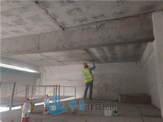 1、板贴碳纤维布在原商铺内施工,部分商铺位留有冻库,不能上人同时需要做好保护,给施工增加了一定的难度;